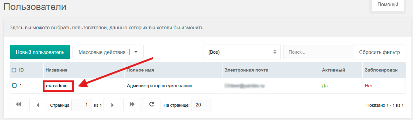 Далее откроется окно с пользователями. Выберите пользователя, у которого хотите изменить пароль, и нажмите на его логин.