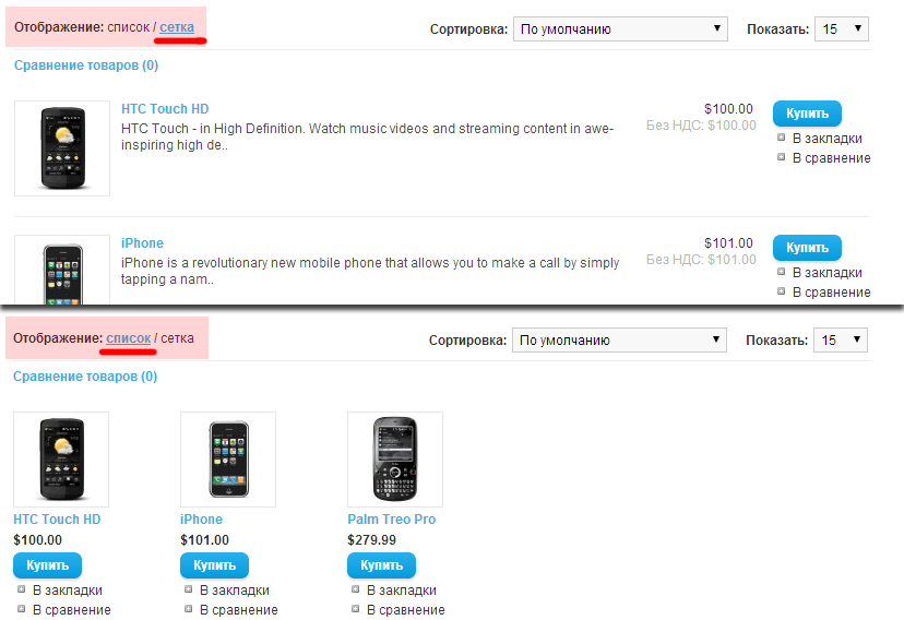 Для отображения товаров в OpenCart по умолчанию выбран параметр "список". Как изменить список товаров по умолчанию на "сетку"? Очень просто!